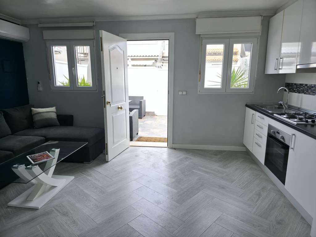 Esta encantadora vivienda en planta baja cuenta con un dormitorio y un baño, ideal para parejas o como acogedora segunda residencia. La zona de estar abierta con cocina práctica ofrece un interior luminoso y agradable, mientras que la terraza totalmente privada invita a relajarse y disfrutar del sol. La cómoda zona de estar y el práctico espacio de almacenamiento para los cojines del mobiliario completan la terraza.
