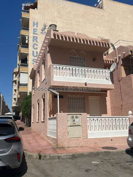 Casa Adosada de 3 Dormitorios en el Centro de Torrevieja – A Solo 500 Metros del Mar Descubre esta fantástica casa adosada ubicada en pleno corazón de Torrevieja, a tan solo 500 metros del mar y rodeada de todos los servicios que ofrece el centro de la ciudad: supermercados, colegios, transporte público, farmacias, zonas de ocio y comercios. Una propiedad perfecta tanto para residencia habitual como para disfrutar de las vacaciones junto al Mediterráneo. Distribución y espacios: La vivienda cuenta con 108 m2 construidos, distribuidos en dos plantas de 53 m2 cada una, lo que ofrece un espacio bien organizado y funcional para toda la familia. Planta baja: Amplio patio delantero con pérgola, ideal como zona de descanso al aire libre o para reuniones sociales. Salón-comedor luminoso, equipado con aire acondicionado para un ambiente confortable durante todo el año. Cuarto de baño completo con plato de ducha. Cocina independiente totalmente equipada, con buena capacidad de almacenaje y conectada a una galería práctica y funcional para zona de lavado. Planta alta: Tres habitaciones dobles, todas con ventanas al exterior y equipadas con aire acondicionado. Baño completo con bañera. Dormitorio principal con acceso a terraza tipo balcón, un espacio perfecto para disfrutar del aire libre con privacidad. Características adicionales: Aire acondicionado en salón y habitaciones. Buena distribución interior y excelente luminosidad. Patio y terraza que aportan valor añadido a la vivienda. Una propiedad ideal para quienes buscan amplitud, cercanía al mar y todos los servicios al alcance en una de las zonas más prácticas y demandadas de Torrevieja. ¿Te gustaría visitarla o recibir más información? ¡Contáctanos sin compromiso!