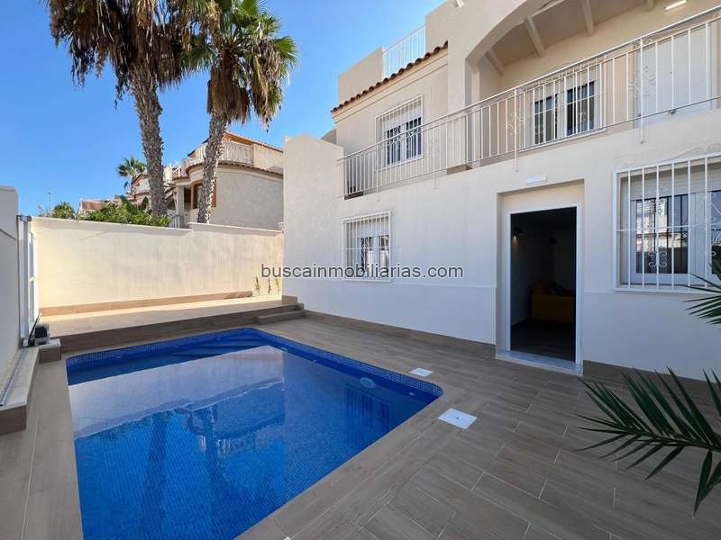 PRESENTAMOS ESTE MAGNÍFICO CHALET INDEPENDIENTE TOTALMENTE REFORMADO, CON UNA SUPERFICIE DE 166 M2, DISTRIBUIDO EN DOS PLANTAS Y UBICADO EN UNA DE LAS ZONAS MÁS TRANQUILAS Y SEGURAS DE TORREVIEJA, DENTRO DE LA PRESTIGIOSA URBANIZACIÓN MIRAMAR III. UNA PROPIEDAD QUE COMBINA ELEGANCIA, CONFORT Y FUNCIONALIDAD, IDEAL TANTO PARA VIVIR TODO EL AÑO COMO PARA DISFRUTAR DE UNA EXCLUSIVA SEGUNDA RESIDENCIA JUNTO AL MAR.