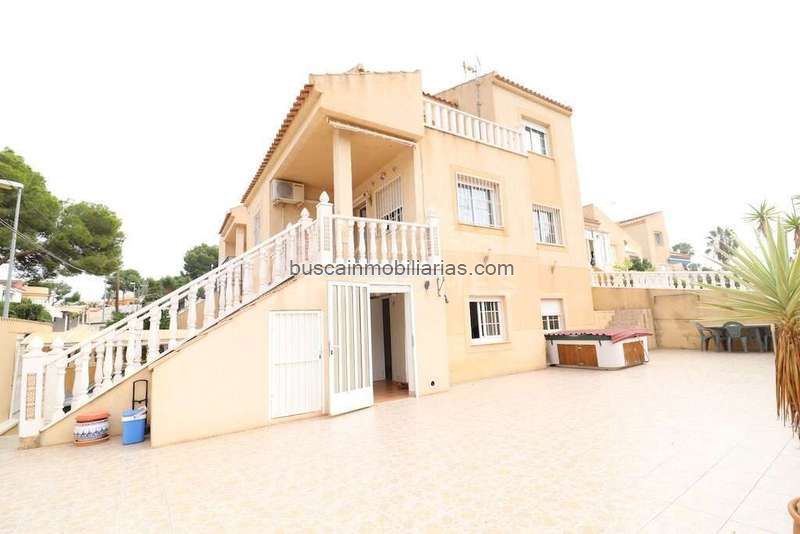 Los Balcones Chalet independiente con una vivienda en 3 plantas de 120 m2 y con una parcela en esquina a dos calles de 200 m2 con entrada para coche zona de barbacoa y jacuzzi, la vivienda dispone de 3 dormitorios, 3 baños, un amplio salón comedor, cocina independiente, la vivienda se vende amueblada y cuenta con calefacción central y piscina comunitaria.~