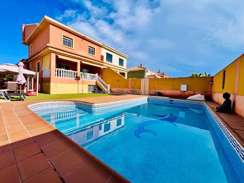 Descubre este exclusivo chalet pareado en la tranquila zona de Aguas Nuevas, Torrevieja. Con una generosa parcela de 433 m2 y un área construida de 250 m2 distribuidos en dos plantas y sótano, esta propiedad es ideal para familias que buscan espacio y comodidad. En la planta baja encontrarás una cocina independiente totalmente equipada, un dormitorio adaptado como despacho, además de un luminoso salón-comedor perfecto para compartir momentos inolvidables. La primera planta alberga tres amplios dormitorios con vestidores personalizados y otro baño completo. El sótano ofrece garaje privado con capacidad para hasta cuatro vehículos junto a zonas polivalentes ideales como sala de juegos o trastero adicional. Disfruta del exterior donde podrás relajarte al lado de tu piscina privada mientras aprovechas las áreas diseñadas para barbacoa bajo pérgolas acogedoras; todo esto rodeado por múltiples terrazas tanto bajas como altas que maximizan el disfrute del sol gracias a su orientación sur.