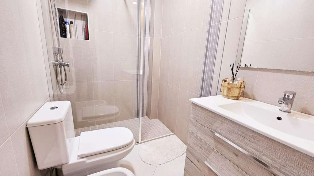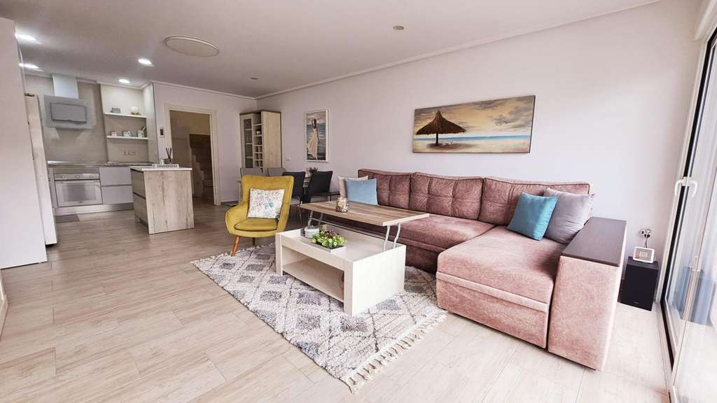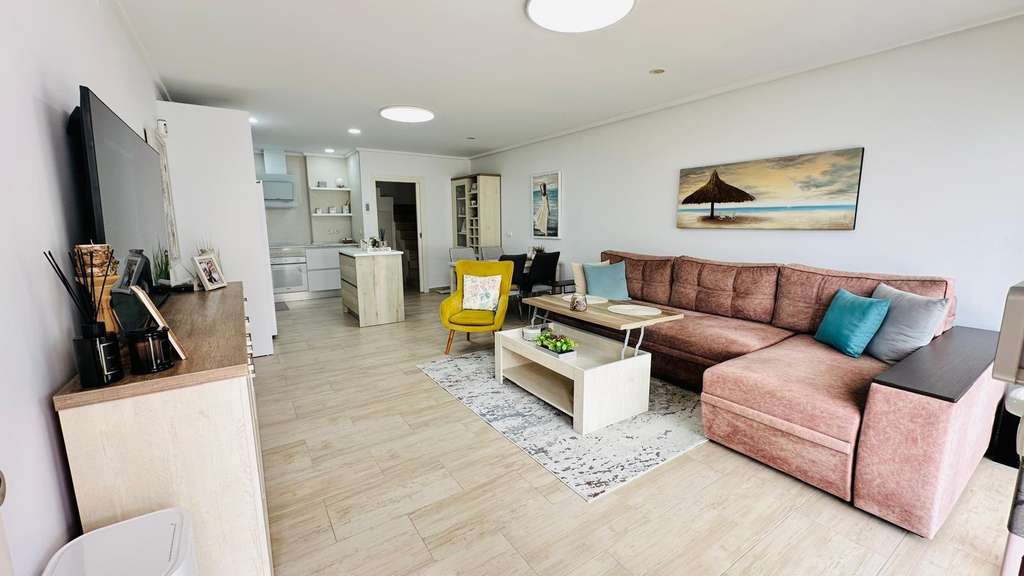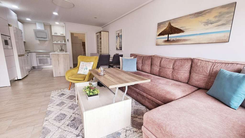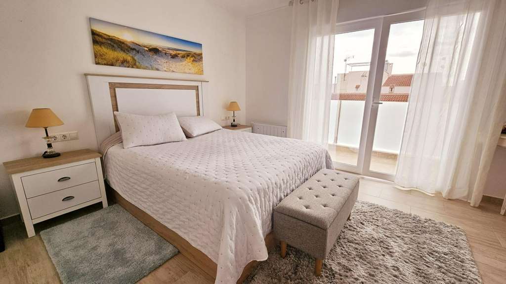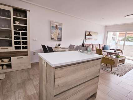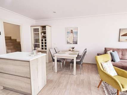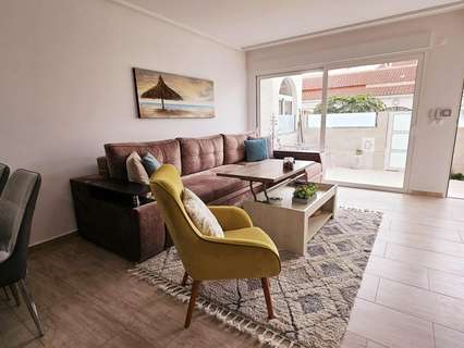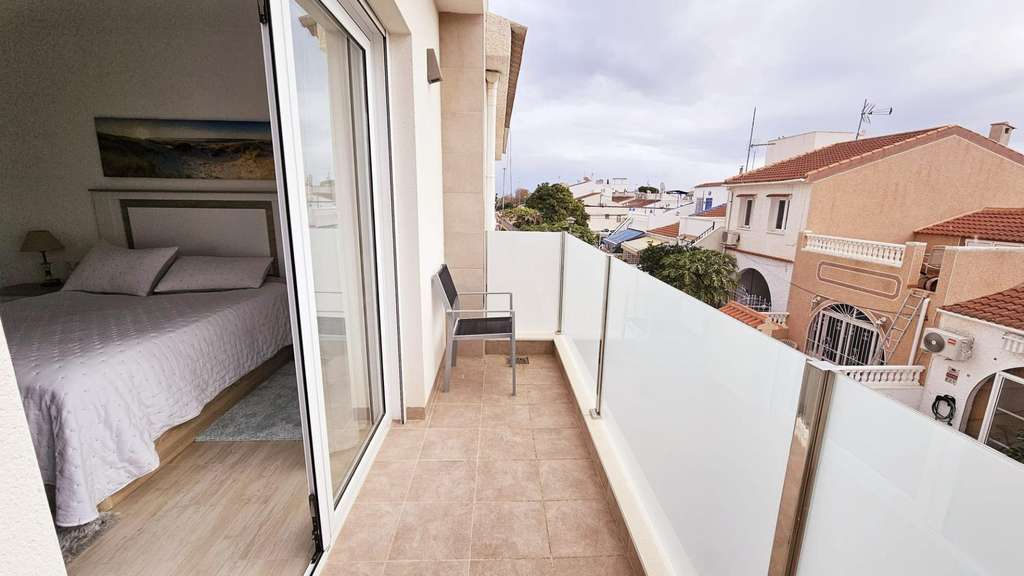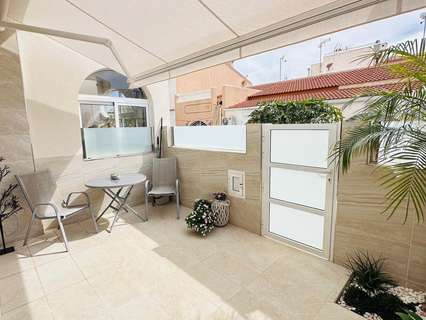 EXCELENTE OPORTUNIDAD! Precioso duplex recien reformado en una zona muy tranquila mirando al sur. Consta de 2 dormitorios amplios, 2 baños completos, salon-comedor amplio y soleado y cocina totalmente amueblada y equipada con todos los electrodomesticos. En la planta baja se encuentra un patio.terraza de donde entras en el salon-comedor . Ahi se encuentra la cocina y un baño completo. En la planta de arriba estan los dormitorios dobles con aire-acondicionados,,un baño completo. El dormitorio principal tiene salida a la terraza con vistas . En la segunda planta esta el rincon de la lavanderia y la terraza del solarium de unos 45m2 con vistas preciosas a las salinas de Torrevieja. La casa se vende totalmente amueblada y preparada para entrar a vivir. La casa se encuentra cerca de varios supermercados, bares y restaurantes, parada de autobus, parque infantil.. Si quieres vivir en una casa reformada y tener todo lo necesario de una calidad alta o invertir en un apropiedad con alta rentabilidad, llame y pide su visita. Te encantara!