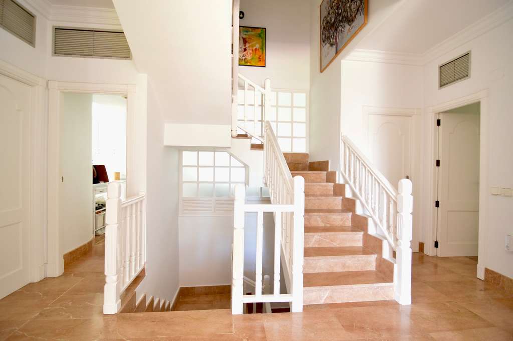 Esta villa independiente, construida en 1989, dispone de 4 dormitorios y 4 baños, repartidos en 2 plantas, con una generosa superficie habitable de 520 m². Ubicada en una extensa parcela de 800 m², completada con una terraza y balcón, la propiedad ofrece tranquilos espacios al aire libre.