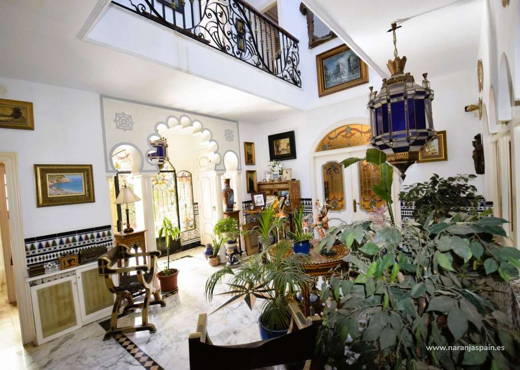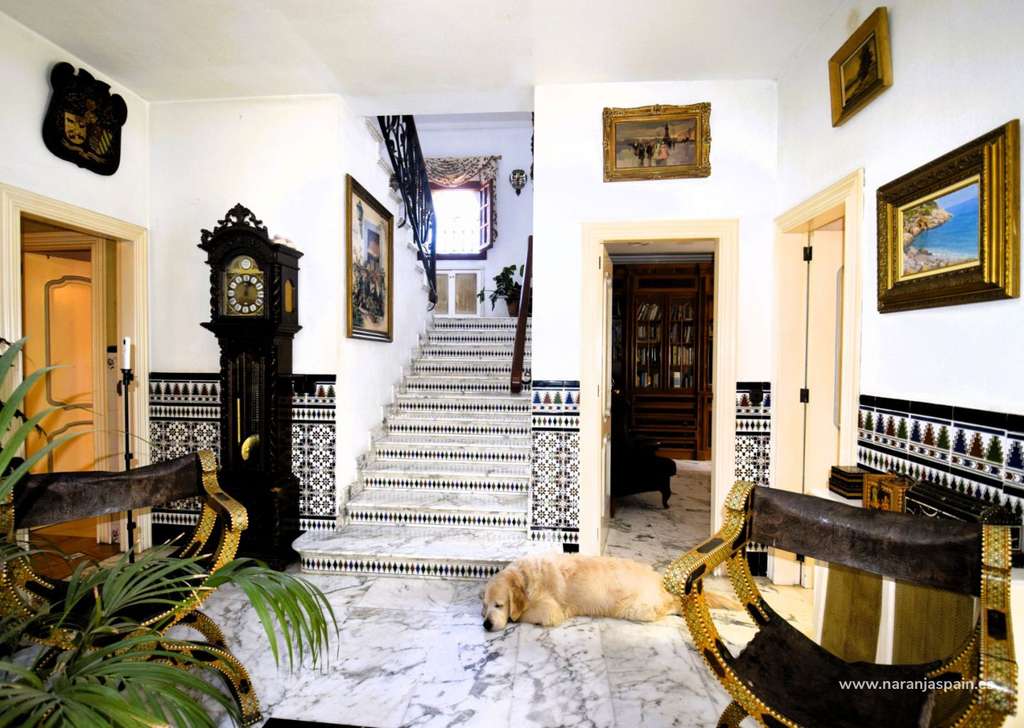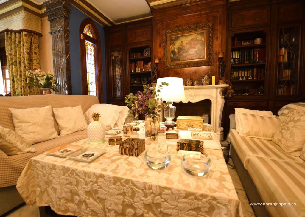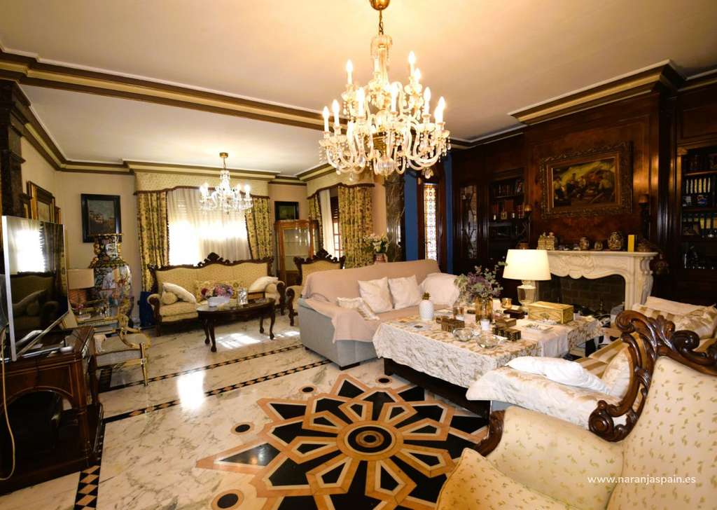 En planta baja nos encontramos con un enorme recibidor con techo de 9m de altura, una oficina ( que se puede utilizar de dormitorio ), un dormitorio con armario empotrado y baño completo en suite , aseo de invitados,  gran salón con chimenea y muebles de lujo, cocina-comedor con la galería, garaje para dos coches.
