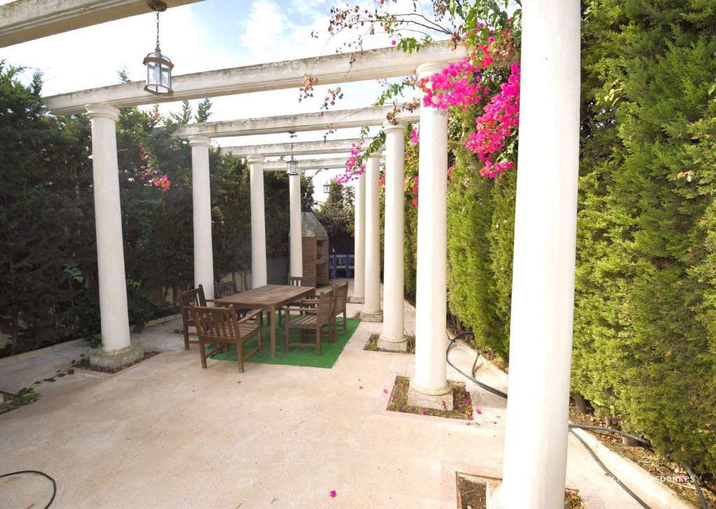 La villa tiene 2 plantas. Grande Piscina y garaje para varios vehiculos.