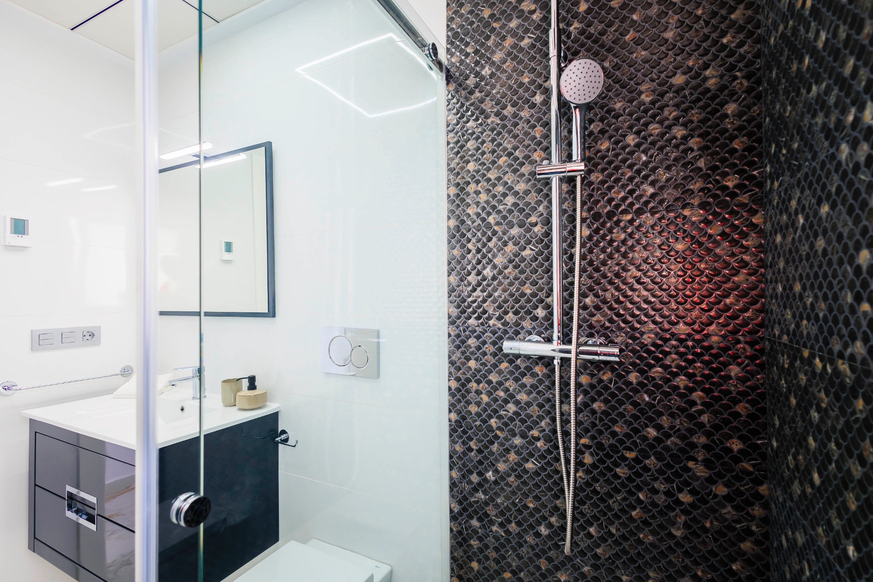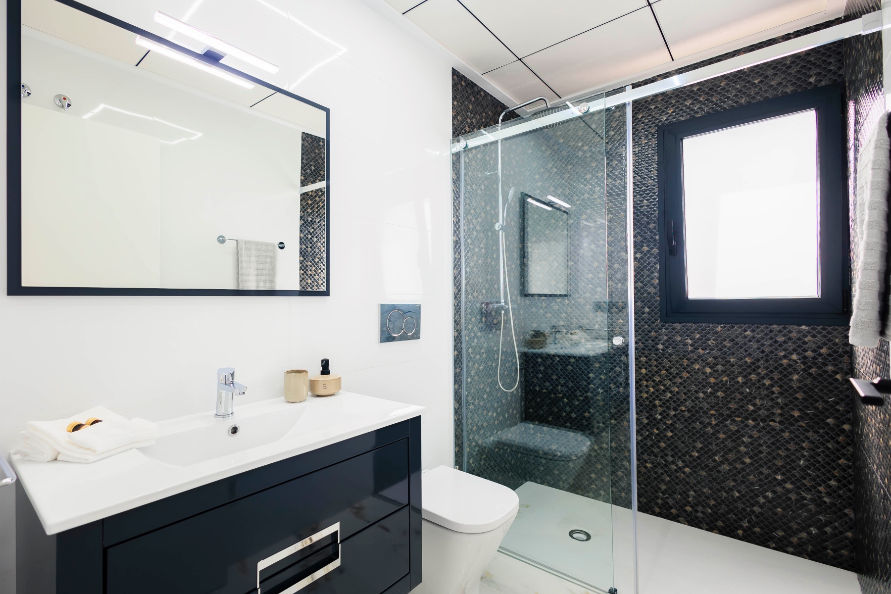 Preinstalación de aire acondicionado por conductos y calefacción por suelo radiante en baños.
