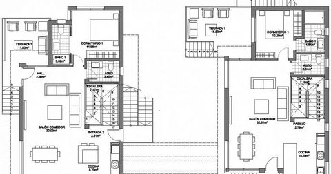 La superficie total de 310 m² construidos. Consta de 4 dormitorios dobles (2 en suite), 4 baños, 2 salones y cocina, además de aparcamiento privado, terrazas y solarium con vistas al mar.