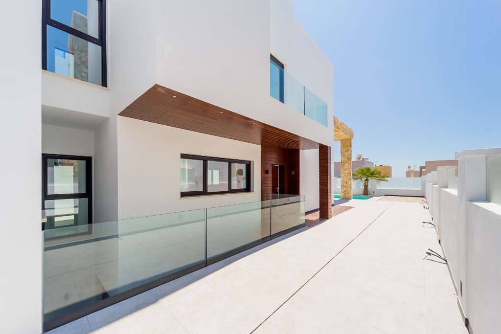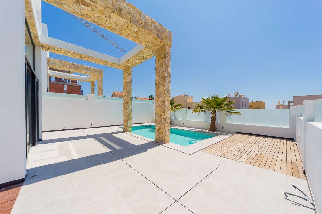 Ofrecemos casas en venta en una zona agradable, cerca del mar y las playas. Cada casa tiene 3 dormitorios, 3 baños, sala de estar, cocina, terraza y solarium con vistas al mar y una bodega. En los hogares se ha instalado sistema Smart Home (hogar inteligente), así como el sistema de intercomunicación de vídeo y seguridad. En la parcela hay una piscina, aparcamiento y jardín. Las casas tienen un bonito diseño moderno, las habitaciones son amplias y luminosas. Las villas están construidas en una zona privilegiada de Torrevieja, a sólo 300 metros del mar y la playa. A poca distancia de las playas, tiendas, restaurantes, bares, bancos y mucho más. También en las inmediaciones del lago rosado de Torrevieja y La Mata, con las reservas naturales y los lugares para la recreación y el deporte. A pocos minutos en coche del centro de la ciudad, donde encontrará un montón de atracciones y ocio. Villa en construcción.