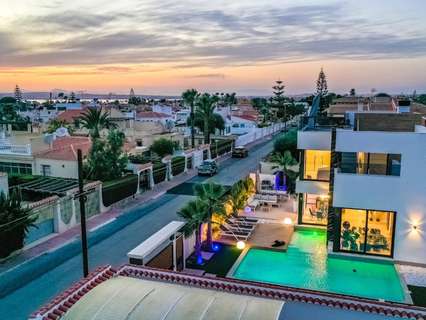 Se vende esta fantástica villa de lujo de obra nueva. Está ubicada a pocos metros de las salinas, lo que le brinda un clima único con muchos beneficios para su salud. Este área protegida le ofrece un agradable paseo con buenas vistas sobre el lago y la fauna/flora local.La casa cuenta con 4 dormitorios y 3 baños. Salón muy grande y espacioso que conduce directamente al área exterior donde se puede disfrutar del sol y el aire del lago salado. El constructor también ofrece una serie de opciones por una tarifa adicional que harán que esta villa sea aún más cómoda:1. Sistema de calefacción de piscina - 6000 euros2. Sistema de hogar inteligente - 8000 euros3. Pintar fachadas con un compuesto protector especial que protegerá del polvo y la suciedad - 5.000 euros4. Instalación de aires acondicionados en ambas plantas - 8000 euros.5. Instalación de suelo radiante en 3 baños - 8000 euros6. Coporteros de acero inoxidable para todos los cristales de las terrazas - 3000 euros (o coporteros normales de hierro negro)7. Césped artificial en el jardín - 2500 euros8. Bomba y depósito de agua en la entrada - 1500 euros.9. Ventanas de la más alta calidad: 10.000 euros (la diferencia entre las puertas de aluminio normales y las ventanas de alta calidad se puede ver en el escaparate)Junto a la piscina hay un lindo espacio para hacer una zona BBQ y colocar algunas amenidades.Tiene la opción de instalar un jacuzzi en el solárium con vistas directas al lago salado.Las playas y dunas de Torrevieja / La Mata se encuentran entre las mejores que se pueden ver en la zona.Cerca de la casa se encuentra el centro comercial Habaneras y a tan solo 10 minutos en coche se llega a La Zenia Boulevard, que es el maul comercial más grande de la zona.Grandes aeropuertos como los de Alicante y Murcia están a tan solo una hora en coche.