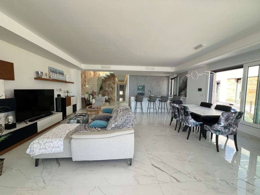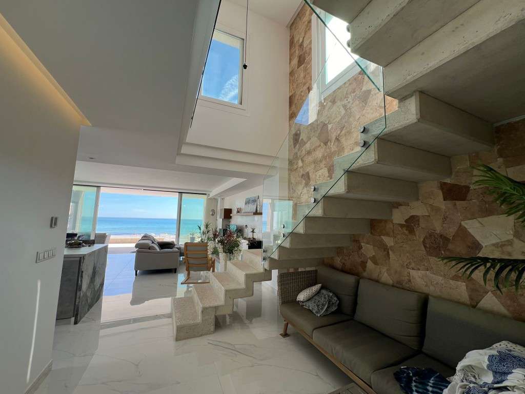 VILLA MODERNA ESPECTACULAR EN VENTA EN 1ª LÍNEA DE LA PLAYA EN LA MATA PLAYATenemos en venta una villa espectacular a un paso de las mejores playas de arena con acceso privado al mar mediterráneo. La propiedad cuenta con una superficie habitable de 94 m2 distribuidos en 2 plantas comunicadas por escalera interior, sobre una parcela de 350 m2. Dispone de un total de 5 dormitorios, 4 baños, cocina abierta con comedor, terraza abierta y salón con vistas a la playa. En la planta primera se pueden disfrutar de vistas al mar desde los dos amplios dormitorios y desde su gran solárium. Hay un jardín privado con zona ajardinada y propio aparcamiento. Vivienda perfecta en una reconocida zona a un paso de la playa y rodeada de todos servicios.La Mata excelente lugar, uno de los mejores barrios residenciales de Torrevieja. Hay hermosas playas de arena, dunas, aire limpio y la urbanización tranquila. En pocos minutos los lagos únicos de Torrevieja, con parques nacionales, lugares para actividades deportivas y de ocio. Además, a pocos minutos del centro de la ciudad, con sus pintorescas calles, el puerto, parques, tiendas y entretenimiento para toda la familia.