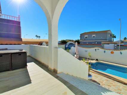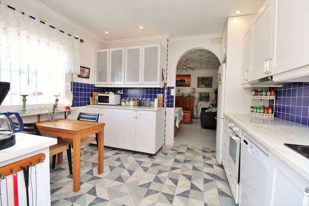 Esta bien presentada villa independiente orientada al Suroeste se encuentra en una parcela de 296m² en la popular zona residencial de La Siesta, Torrevieja. Una vivienda de una sola planta, con toda la distribución en un mismo nivel para una vida cómoda y accesible. La villa cuenta con piscina privada, aparcamiento dentro de la parcela con puerta eléctrica, y un excelente sistema de ahorro energético gracias a 14 paneles solares instalados con batería, lo que reduce notablemente los costes de mantenimiento. En el interior ofrece un luminoso salón-comedor, una cocina independiente con acceso directo al jardín, 2 dormitorios y un moderno baño con ducha a ras de suelo.En el exterior dispone de una soleada terraza delantera elevada, además de una cocina de verano y un trastero en la parte trasera. Situada cerca de servicios, supermercados, transporte público y los parques naturales de Torrevieja, esta villa ofrece una excelente relación calidad-precio y un fantástico estilo de vida mediterráneo.
