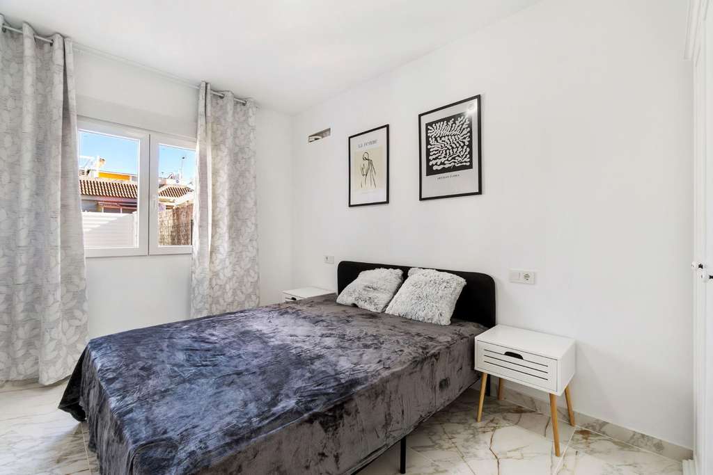 Chalet pareado recién reformado en El Chaparral, situado a poca distancia en coche de tiendas, bares, restaurantes, supermercados y la ciudad de Torrevieja. Esta separado en dos viviendas con los accesos independientes. En la planta baja tenemos una vivienda de 54m2 de área, que consta de 2 dormitorios, un baño, salón-comedor, cocina americana. En la planta primera un apartamento con su entrada independiente de unos 35m2, que consta de 1 dormitorio doble, salón, tiene su propia cocina y baño; con una amplia terraza con las vistas a los alrededores. La reforma integral realizada recientemente con los materiales de calidad y moderno diseño interior. Suelo radiante en los baños. Se vende con muebles y electrodomésticos a estrenar. Sitio para aparcar el coche en la parcela. Este chalet ofrece una armoniosa combinación de comodidad y estilo.