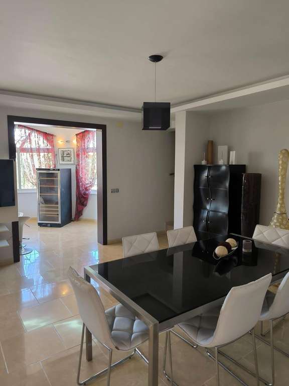 Se vende gran villa familiar de 4 dormitorios con salón y oficina independiente, construida en una parcela de 1.100 m2 con piscina privada de 10 x 8, cocina de verano independiente y totalmente equipada con terraza y un antiguo jardín subtropical: pinos, palmeras, cactus, granados y limoneros, ficus y rosas. La parcela dispone de un portón de entrada con zona de aparcamiento cubierto de hiedra para 2 coches. La villa se encuentra en la zona Chaparral – La Siesta de Torrevieja en la calle Flecha. Se trata de una zona tranquila y ecológica de villas con amplias parcelas y jardines subtropicales. Distancia a la playa central de Torrevieja y al mar Mediterráneo – 5 km. La villa está construida en 2 plantas, tiene 220 m2 de superficie total y 180 m2 de superficie habitable. En la planta baja de la villa hay una terraza ovalada con grandes ventanales, conectada a un salón de 50 m2. Desde el salón se accede al primer dormitorio de invitados y a un espacioso estudio con chimenea y un conjunto de sofás de cuero genuino. Desde el salón pasamos también a una cocina independiente, totalmente equipada y amueblada. Desde la cocina hay una puerta a la zona de la casa... al jardín. Una escalera iluminada con barandillas conduce al segundo piso. En la segunda planta de la casa hay 3 dormitorios: un dormitorio principal de 26 m2 con salida al balcón, un dormitorio infantil de 14 m2 y un 4º dormitorio-estudio de señora con salida al balcón. La villa se vende completamente amueblada, con todos los electrodomésticos, aire acondicionado central, suelo radiante en toda la casa, decoración, cortinas, vajilla. El precio en formato “ven a vivir” es de 550.000 euros.