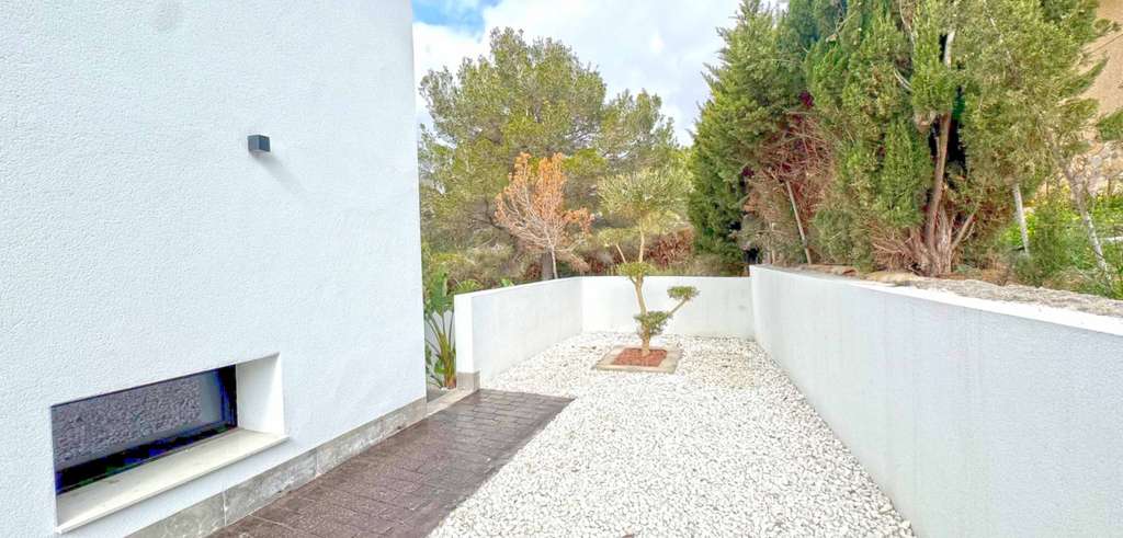 Salga al exterior y disfrute de su oasis privado, donde una impresionante piscina privada le espera, rodeada de un hermoso jardín paisajístico, perfecto para relajarse y disfrutar del sol mediterráneo. Hay espacio para varios coches para aparcar y la posibilidad de construir un cobertizo para coches.