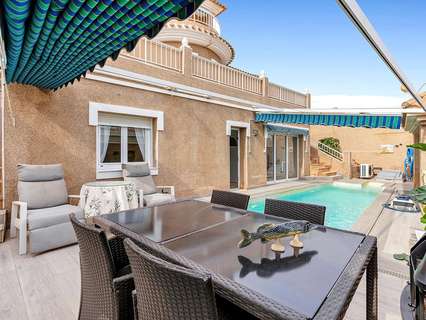 Exclusiva villa independiente de estilo mediterráneo con vistas al mar y piscina privada en Los Altos, Torrevieja Descubre esta magnífica villa independiente en una de las zonas más demandadas de Torrevieja. Con un diseño elegante de estilo mediterráneo, esta propiedad ofrece el equilibrio perfecto entre confort, privacidad y cercanía a todos los servicios. 5 dormitorios | 3 baños | 131 m² construidos | Parcela de 330 m² Ubicación privilegiada: Situada en la tranquila urbanización de Los Altos, a pocos minutos de las playas de Punta Prima y con fácil acceso a colegios, supermercados, restaurantes y centros comerciales como La Zenia Boulevard y Habaneras. Distribución de la vivienda: ✔ Planta baja: Luminoso salón con acceso y las terrazas y zonas de descanso. Cocina independiente totalmente equipada con lavadero/tendedero. 1 dormitorio y 1 baño con ducha Bonito porche y jardines. ✔ Planta alta: 2 dormitorios 1 baño completo con bañera Terraza con vistas despejadas. ✔ Planta semisótano: 2 dormitorios adicionales, perfectos para invitados Zona de ocio. 1 baño completo con bañera Trastero. Área para herramientas En esta planta se encuentra el acceso directo a la espectacular piscina privada de agua salada y una acogedora terraza con chimenea. Te encantará: ✅ La Piscina privada de agua salada. ✅ Varias terrazas para disfrutar del sol y el aire libre. ✅ Urbanización con piscina comunitaria. ✅ Se vende completamente amueblada. ✅ Excelente comunicación con la AP-7 y N-332, facilitando el acceso a Torrevieja, La Zenia y el aeropuerto de Alicante. Una propiedad única, ideal tanto como vivienda habitual como para disfrutar de unas vacaciones inolvidables en la Costa Blanca. ¡No dejes pasar esta oportunidad! Contáctanos para más información o para concertar una visita. Impuestos y gastos no incluidos en el precio
