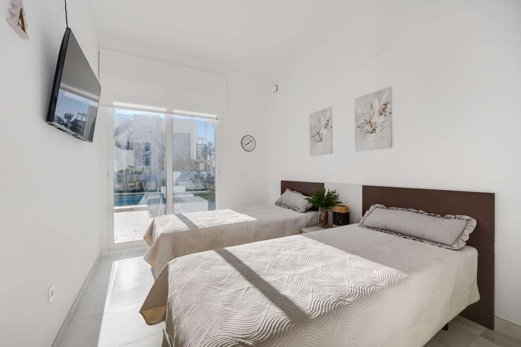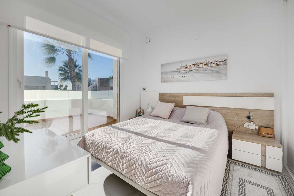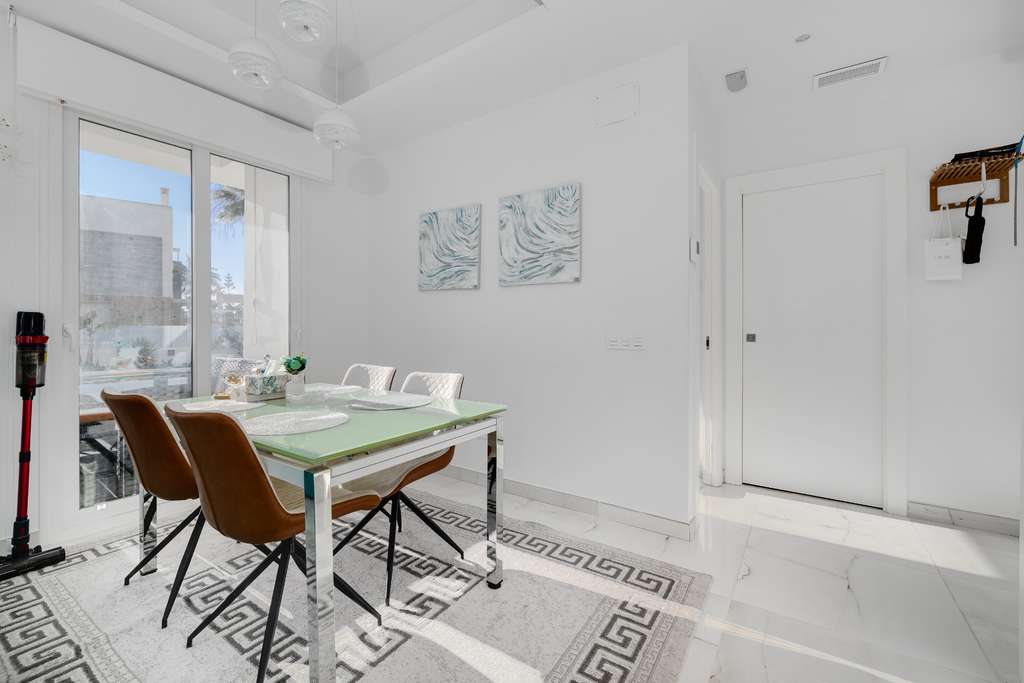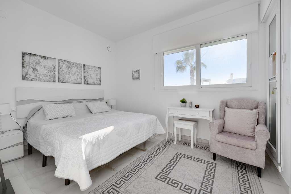 La propiedad se entrega completamente amueblada y lista para entrar a vivir. Aparcamiento privado en la parcela, buenas opciones de almacenamiento y la cercanía a la playa, restaurantes y tiendas ofrecen un estilo de vida práctico y cómodo. El aeropuerto de Alicante está a unos 35 minutos.