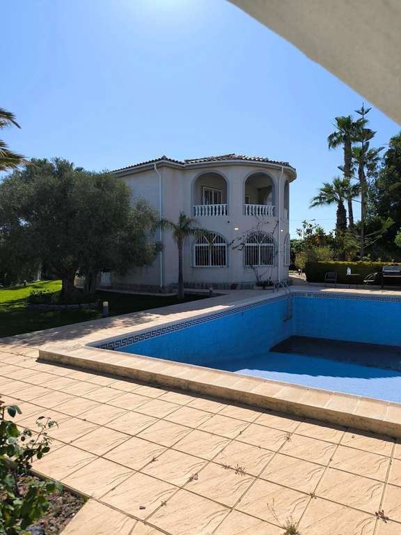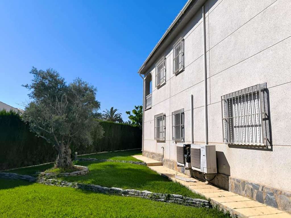 Se vende amplia villa familiar de 4 dormitorios, con salón y despacho independiente, construida sobre una parcela de 1.100 m². La propiedad dispone de piscina privada de 10 × 8 m, cocina de verano independiente totalmente equipada con terraza y un cuidado jardín subtropical maduro con pinos, palmeras, cactus, granados, limoneros, ficus y rosales. La parcela cuenta con puerta de acceso y aparcamiento cubierto para 2 vehículos, cubierto de hiedra. Ubicación La villa se encuentra en la zona de El Chaparral, en Torrevieja, calle Flecha. Zona tranquila y ecológica de villas con amplias parcelas y jardines subtropicales. Distancia a la playa central de Torrevieja y al mar Mediterráneo — 5 km. Características - Plantas: 2 - Superficie total: 220 m² - Superficie habitable: 180 m² Distribución Planta baja: - Terraza ovalada con grandes ventanales - Amplio salón de 50 m² - Dormitorio de invitados - Despacho independiente con chimenea y mobiliario de cuero natural - Cocina independiente totalmente equipada - Baño de cortesía con ducha - Salida directa al jardín desde la cocina Planta superior: - Escalera iluminada con barandilla - 3 dormitorios: - Dormitorio principal de 26 m² con balcón - Dormitorio infantil de 14 m² - Cuarto dormitorio / despacho femenino con balcón Equipamiento La villa se vende completamente amueblada, con electrodomésticos, aire acondicionado central, suelo radiante en toda la vivienda, decoración, cortinas y menaje. Propiedad “llave en mano”.