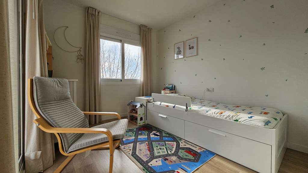 La casa se distribuye en tres plantas: garaje/oficina, planta baja con salón, comedor, cocina y un dormitorio con baño en suite. La primera planta consta de dos dormitorios y dos baños, uno de ellos en suite con el dormitorio principal. Ambos dormitorios de esta planta tienen acceso a la terraza, desde la cual una escalera conduce a la azotea. Desde allí, se pueden disfrutar vistas panorámicas de todo el barrio.