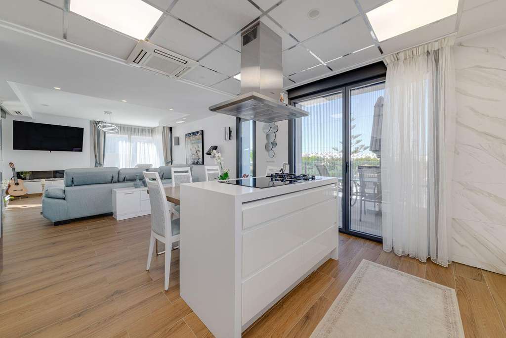 Una joya contemporánea concebida para quienes buscan excelencia, confort absoluto y una estética impecable. Esta villa única combina tecnología de vanguardia, amplitud y acabados de primer nivel en una de las zonas más prestigiosas de Torrevieja.Características destacadas3 dormitorios4 baños461 m² construidosParcela de 790 m²Piscina privada con cascadaHamam en baño principalGimnasio privadoPlaza de aparcamiento para dos vehículos.Sistema de casa inteligenteDieciocho paneles solaresSuelo radiante en toda la viviendaCocina equipada con electrodomésticos premiumSUMA mensual 90 €En la planta baja se despliega una amplia zona social con chimenea, un salón independiente y un sistema de sonido envolvente. El suelo radiante garantiza confort durante todo el año. La cocina, completamente equipada, incorpora electrodomésticos de alta gama. Todos los espacios están integrados al sistema inteligente de la vivienda, y los baños cuentan con radios y acabados NOKEN.La planta superior ofrece cuatro dormitorios excepcionales. La suite principal dispone de un baño en suite con hamam privado, mientras que las habitaciones adicionales incluyen baño propio y armarios empotrados. Una gran terraza elevada con ducha ofrece un rincón perfecto para relajarse al sol.El sótano alberga un gimnasio, una sala multiusos ideal para cine en casa, trasteros y salas técnicas.En el exterior, la piscina con cascada y su zona de terraza invitan a disfrutar del estilo de vida mediterráneo.A 5 min de La Zenia Boulevard y 7 min de la playa. Aeropuertos de Alicante y Murcia a solo 45 min.