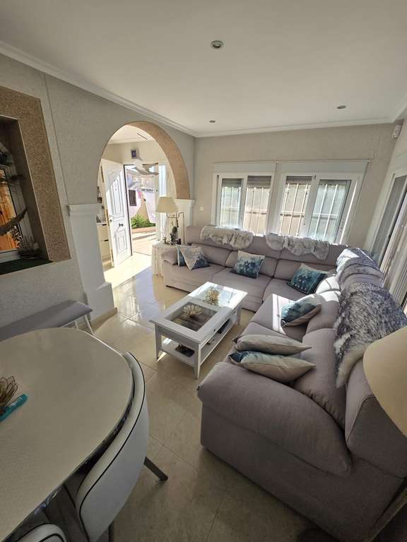 ???? Vivienda mediterránea con encanto en Torrevieja – 3 habitaciones y 2 baños~~Luminosa y acogedora casa ideal para vivir todo el año o como segunda residencia. Cuenta con 3 dormitorios, 2 baños completos, salón amplio con salida a terraza privada, y cocina independiente equipada con zona de lavandería.~~✨ Destacados:~~* Dormitorio principal con baño en suite~* Terraza superior con vistas despejadas~* Patio ajardinado perfecto para relajarse o disfrutar en familia~~~???? Situada en una zona residencial tranquila, cerca de supermercados, colegios, transporte y a pocos minutos de la playa.~~???? Ubicación privilegiada en Torrevieja, rodeada de naturaleza y con excelente conexión a las principales vías.