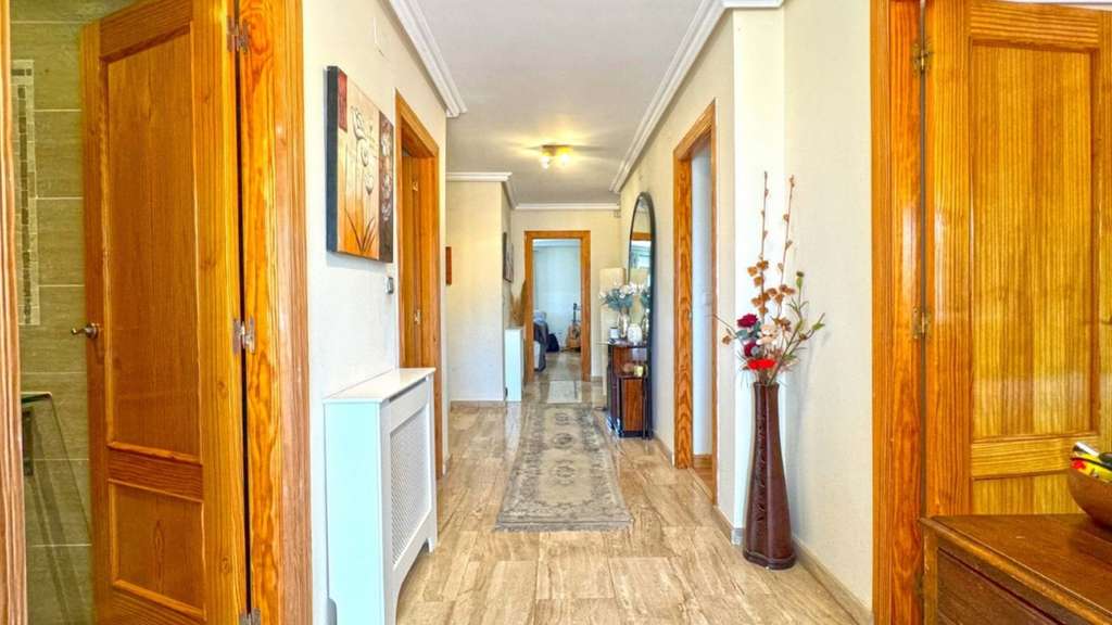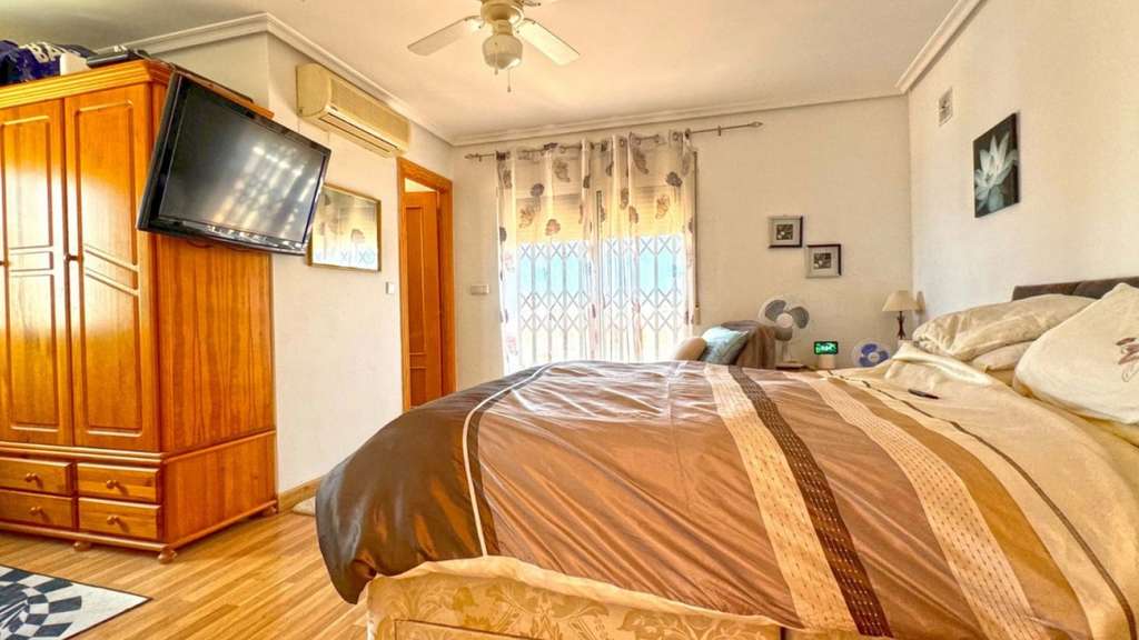 Impresionante chalet independiente de 6 dormitorios y 6 baños, ubicado en una parcela de 1.040 m² en la exclusiva zona de Los Balcones, Torrevieja. Con una ubicación ideal a poca distancia de restaurantes, tiendas y cafeterías, y a solo minutos de la playa y varios campos de golf de primer nivel. Esta espaciosa vivienda se distribuye en tres plantas, además de un solárium privado en la azotea con impresionantes vistas de 360°. La planta principal cuenta con un luminoso salón con chimenea, una amplia y moderna cocina-comedor, lavadero, dos dormitorios con baño en suite y un lujoso baño familiar con jacuzzi. La planta superior ofrece dos dormitorios con baño en suite más y acceso a una soleada terraza que da al solárium. El amplio sótano incluye dos dormitorios adicionales, uno de ellos con preinstalación para baño, perfecto para invitados o para convertirlo en una vivienda adicional. En el exterior, la propiedad cuenta con una piscina privada de 60 m² con zona de jacuzzi, varias terrazas-comedor, jardines de fácil mantenimiento con árboles frutales y aparcamiento para hasta cuatro coches. Las características adicionales incluyen aire acondicionado en toda la casa, preinstalación de calefacción central, cámaras de seguridad, iluminación con sensor, portón eléctrico en la entrada y ventanas de doble acristalamiento. Esta villa ofrece la combinación perfecta de espacio, privacidad y estilo de vida mediterráneo, ideal como vivienda familiar o como refugio vacacional de lujo.