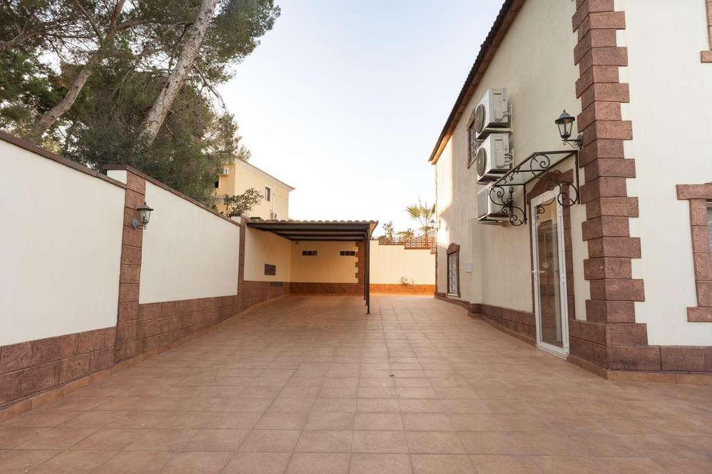 Magnífico chalet en venta en Los Balcones (Torrevieja) Descripción: Exclusivo chalet situado en una de las zonas más prestigiosas de Torrevieja, ideal para aquellos que buscan una vivienda con elegancia y comodidad. Esta magnífica casa de dos plantas, con una superficie de 312 m², está construida en una parcela de 800 m², rodeada de parques y zonas verdes. Características principales: - Distribución: - Planta baja (185 m²): Hall de entrada, 1 baño con ducha, salón-comedor con zona de chimenea, cocina-comedor, cuarto de lavado equipado con lavadora y secadora. Además, cuenta con una estancia habitable de 40 m² con entrada independiente (tipo estudio), con zona de dormitorio, zona de cocina, zona de estar y baño independiente. - Planta alta (127 m²): 5 dormitorios y 2 amplios baños. Desde el dormitorio principal se accede a un amplio balcón con escaleras que llevan a la solárium. Todas las habitaciones están equipadas con aires acondicionados de alta gama, internet y televisión por satélite. - Iluminación y vistas: Todos los espacios están llenos de luz natural y cuentan con vistas abiertas. Además, la casa tiene una orientación excepcional. - Zonas exteriores soñadas: Jardín privado, piscina descubierta de 6x10 m con agua salada, aparcamiento cubierto, cuarto de herramientas, zona de barbacoa y áreas de descanso (estancia acristalada independiente de 25.2 m² con aire acondicionado, zona de cocina, área de descanso y equipada con barbacoa y chimenea, ideal para disfrutar del buen clima durante todo el año). - Ubicación: La casa se encuentra en una zona tranquila, pero muy cerca de servicios esenciales como supermercados, colegios, hospitales y con fácil acceso a las principales vías de transporte. Además, a solo 10-15 minutos en coche se encuentran los conocidos centros comerciales La Zenia (Orihuela Costa) y Habaneras (Torrevieja). Por último, la excelente accesibilidad a la autopista (5 minutos) ofrece múltiples ventajas para desplazarse en cualquier dirección. También se encuentran a 2 minutos en coche grandes tiendas como Mercadona, Aldi, Tedi y el gran hospital urbano de Torrevieja. La playa está a 5 minutos en coche. A 3 minutos a pie hay una gran cantidad de instalaciones deportivas. ¡Cerca de la casa se encuentra el único club de tenis de la ciudad con una gran cantidad de pistas! No dude en contactar para obtener más información o para organizar una visita.