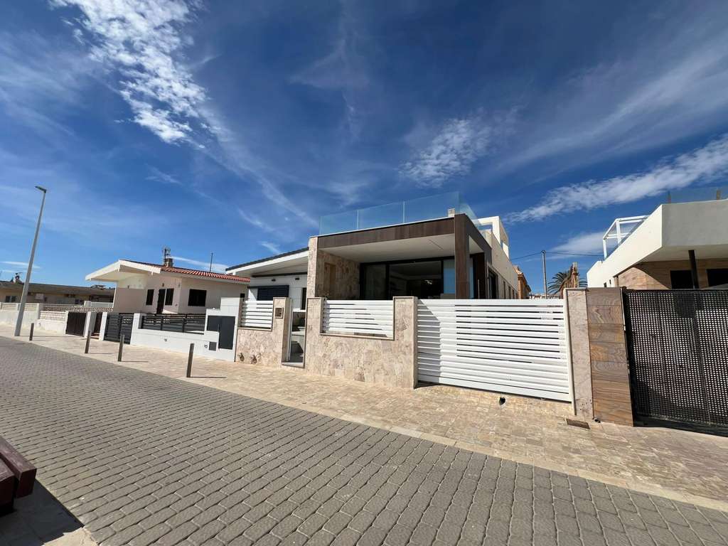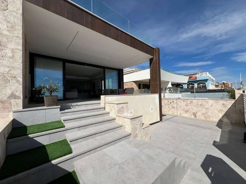 Descubre la Exclusividad de Vivir Frente al Mar Te presentamos una inigualable villa a pie de playa diseñada para quienes buscan lo mejor en estilo de vida. El lujo y la elegancia se fusionan para ofrecerte una experiencia de vida única. Con un diseño arquitectónico moderno que cuida hasta el más mínimo detalle, esta propiedad ofrece el máximo confort y exclusividad. En una ubicación inmejorable, a pie de playa de La Mata. Cada rincón de esta villa está pensado para disfrutar del estilo de vida más sofisticado. Disfruta de amplios espacios, impecables acabados, una luminosidad inigualable y las mejores vistas al mar desde la comodidad de tu hogar. Además cuenta con varios espacios exteriores para disfrutar del maravilloso clima mediterráneo los 365 días al año: parcela de 350 m2 además de un encantador solárium con zona de barbacoa, ideal para reuniones con amigos y familiares. Además, hay espacio preparado para ampliar la propiedad, lo que te permitirá construir un apartamento adicional para recibir a tus invitados. Despierta cada mañana con la suave brisa marina y el sonido de las olas, en un entorno de lujo, tranquilidad y privacidad. Tu sueño de vivir junto al mar, hecho realidad. ¡Contáctanos para más información y comienza a disfrutar de una vida de ensueño hoy mismo!