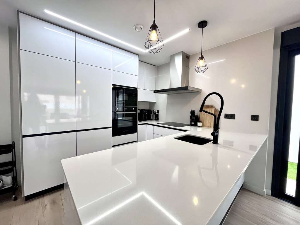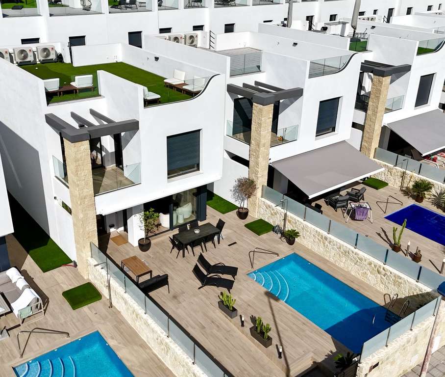 Experimente la vida costera moderna en su máxima expresión en esta excepcional villa de nueva construcción, perfectamente ubicada en el corazón de Punta Prima. Esta casa ofrece la combinación perfecta de estilo, comodidad y conveniencia, a solo un corto paseo de la playa, restaurantes, tiendas y todos los servicios locales. Esta residencia de alta gama, completamente amueblada, se extiende a lo largo de varios niveles y ha sido diseñada pensando en la elegancia y la funcionalidad contemporáneas. La propiedad cuenta con cuatro dormitorios, uno convenientemente ubicado en la planta baja y tres en el primer piso, además de un sótano completamente terminado que ofrece un dormitorio y baño adicionales, ideal para invitados o familiares. El aire acondicionado está instalado en toda la casa con un sistema de conductos para garantizar el confort durante todo el año, mientras que el panel eléctrico mejorado y el sistema de seguridad de última generación brindan seguridad y tranquilidad. Cada detalle ha sido considerado para una vida moderna. Un completo sistema de filtración de agua proporciona agua limpia y de alta calidad en toda la casa, mientras que la cubierta solar de la piscina mejora la eficiencia energética y ayuda a mantener la temperatura óptima de la piscina. Un toldo automático de cierre automático ofrece sombra y protección durante los días soleados. La terraza de la azotea ha sido cuidadosamente renovada para crear un santuario privado, con césped artificial de primera calidad y un putting green personalizado: el lugar perfecto para relajarse, recibir invitados o simplemente disfrutar de las vistas de la costa. Ubicada en una zona céntrica y muy solicitada, esta villa le permite disfrutar de lo mejor de la vida costera con todo a pocos pasos. Combinando arquitectura moderna, tecnología inteligente y acabados de lujo, esta casa lista para entrar a vivir es ideal como residencia permanente, casa de vacaciones o una oportunidad de inversión de alta gama en una de las zonas más codiciadas de la Costa Blanca.