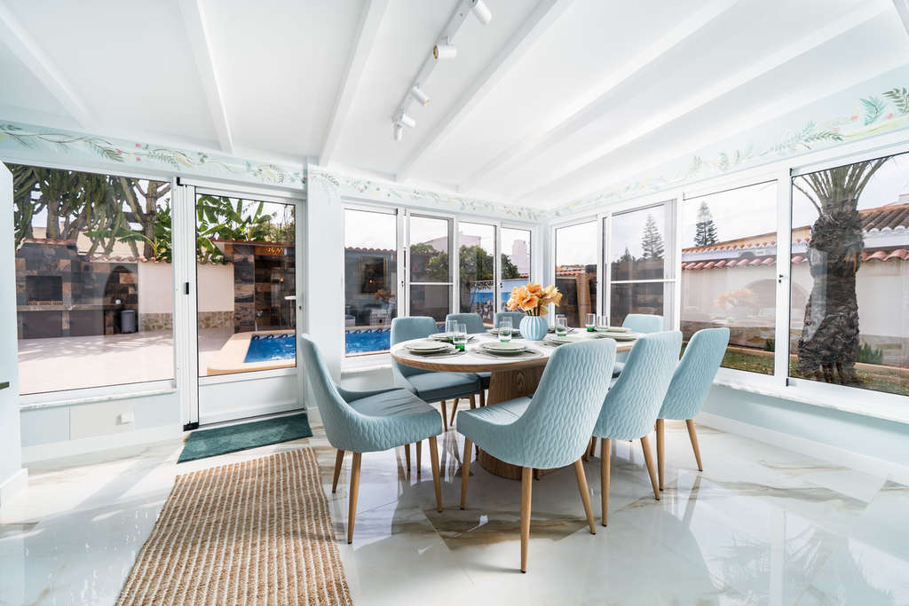 Descubra un lujo y una serenidad incomparables en esta impresionante villa totalmente renovada, perfectamente ubicada cerca del famoso Lago Rosa de Torrevieja. Esto no es solo una casa; es un estilo de vida. Experimente el máximo confort y un diseño superior con materiales de alta calidad en toda la impresionante superficie construida de 201 m², completamente renovada en 2025 para cumplir con los más altos estándares modernos. Características clave que le encantarán: Máxima relajación: Sumérjase en su propia piscina privada de agua salada con calefacción, perfecta para disfrutar durante todo el año. El área de ocio junto a la piscina y la terraza independiente en la azotea ofrecen múltiples rincones idílicos para tomar el sol y socializar. Espaciosa y elegante: La casa cuenta con 4 amplias habitaciones y 3 baños modernos, que ofrecen un amplio espacio para la familia y los invitados. Disfrute del entretenimiento en las dos amplias salas de estar, que incluyen una acogedora chimenea para esas noches más frescas. Confort premium: ¡Diga adiós a los pies fríos! Disfrute de un confort lujoso con calefacción por suelo radiante en toda la casa. Además, ¡mejora tu bienestar con tu propia sauna! Oasis al aire libre: Ubicada en un amplio jardín de 771 m², la propiedad ofrece un refugio privado para disfrutar del aire libre, con una zona de barbacoa para comer al aire libre y un trastero independiente para mayor comodidad. Comodidades prácticas: La propiedad incluye aparcamiento cubierto para dos coches, lo que garantiza seguridad y fácil acceso. Situada en una zona muy solicitada, esta villa ofrece una oportunidad única para poseer un pedazo de paraíso cerca de una maravilla natural. ¡No pierdas la oportunidad de experimentar la máxima expresión del estilo de vida mediterráneo! ¡Contáctanos hoy para programar tu visita exclusiva!