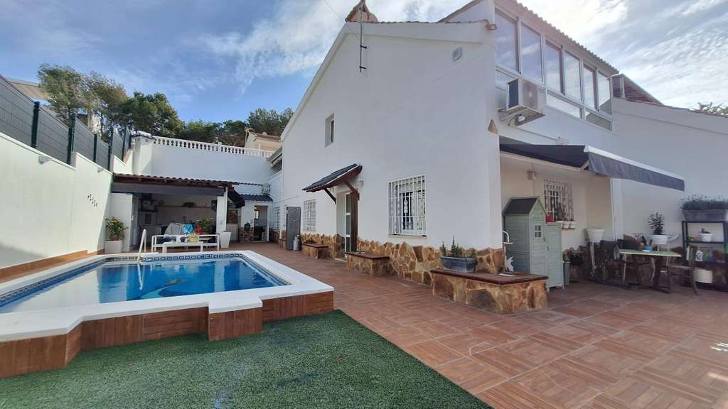 Impresionante Chalet en Torrevieja – Zona Los Balcones Disfruta de una vida cómoda y elegante en este espectacular chalet de 4 amplias habitaciones, 2 baños completos y 1 aseo. Su cocina completamente equipada es ideal para los amantes de la gastronomía y cuenta con detalles de alta calidad como carpintería interior de madera, suelos de gres y parquet, y carpintería exterior de PVC / Climalit que garantizan durabilidad y aislamiento. Características destacadas: Amplio salón luminoso con techos altos, Aire acondicionado para disfrutar todo el año, Piscina privada para relajarte al máximo, Solárium y terraza con vistas increíbles, Jardín y patio para disfrutar del aire libre, Trastero y lavandería para mayor comodidad, Balcón para momentos de relax, Alarma antirrobo para tu tranquilidad. Ubicación inmejorable: Este chalet se encuentra en una zona tranquila y céntrica, justo al frente de club del tenis, rodeada de todos los servicios que necesitas, como centros comerciales, supermercados, hospitales, colegios, parques y zonas infantiles. Además, está muy cerca de la universidad y campos de golf, lo que te permitirá disfrutar de una ubicación ideal para tu día a día. ¡No dejes pasar esta oportunidad de vivir en el hogar de tus sueños!