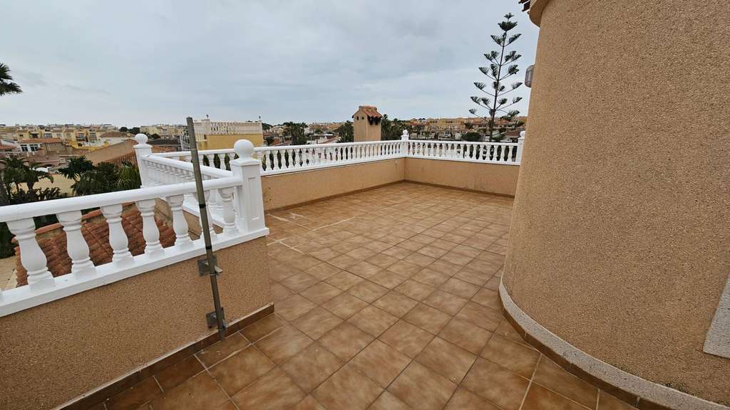 Espaciosa casa de 3 dormitorios con 3 baños, construida sobre una parcela de 420 m², con garaje independiente, piscina privada y solárium. La casa incluye: - Amplio despacho para trabajar o estudiar - Vestidor en el dormitorio principal - Cocina independiente con amplia lavandería y acceso a la piscina - Semisótano – trastero equipado - La casa está ubicada en una zona residencial tranquila de villas en El Chaparral, Torrevieja, provincia de Alicante, España. Características de la casa: - Superficie total: 267 m² + garaje con puerta automática - Año de construcción: 2002 - Salón: 25 m² - Dormitorios: 3 independientes + despacho en el segundo piso - Baños: 3, incluyendo bañera con jacuzzi - Dormitorio principal: con gran balcón y vestidor independiente - Materiales y acabados: escalera de mármol con barandilla de hierro forjado, suelo radiante en toda la casa, aire acondicionado - Solárium: amplio con vistas panorámicas a los Lagos Salados de Torrevieja - Servicios: caldera de gas para calefacción por suelo radiante, electrodomésticos y mobiliario parcialmente instalados Esta casa es perfecta para una familia que valora la comodidad, la privacidad y el espacio en la soleada costa española.