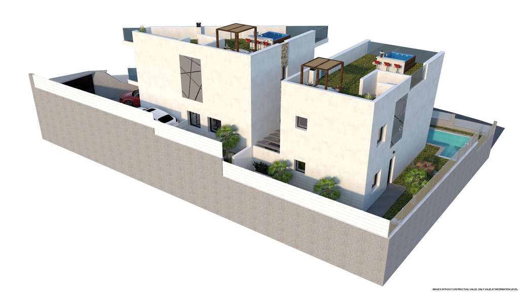 Dos exclusivas villas de obra nueva situadas en la zona de "La Manguilla", entre "La Mata" y "Cabo Cervera" en Torrevieja. Las villas están situadas a sólo 250 m de la playa de Cabo Cervera y a 350 m de la playa de La Mata.