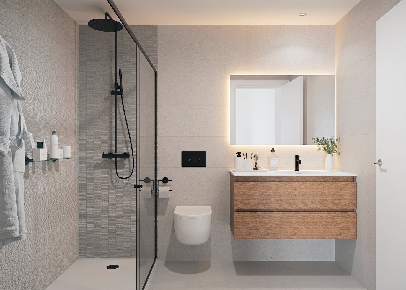 Disfruta de vistas serenas desde la comunidad privada, que también ofrece un gimnasio, áreas de relax al aire libre y aparcamiento subterráneo. Las viviendas cuentan con puertas de seguridad reforzadas, ventanas doble acristaladas y persianas eléctricas, asegurando comodidad y seguridad. Con los electrodomésticos incluidos y una garantía de 10 años, estas propiedades son perfectas tanto para la vida a largo plazo como para una inversión en alquiler, dado su proximidad a la playa, a las comodidades y a los campos de golf.
