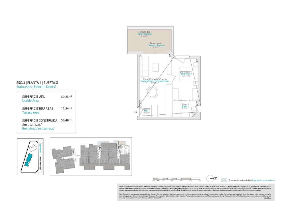 1 dormitorio y 1 bañoLuminoso salón-comedor con cocina abiertaTerraza cubierta de 5,52 m² y terraza descubierta de 6,02 m²Superficie construida total: 58,49 m²