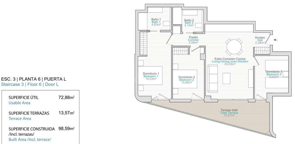 El complejo ofrece apartamentos y áticos de 1, 2 y 3 dormitorios, todos ellos diseñados para maximizar la luz natural y las espectaculares vistas al mar. Las amplias terrazas permiten disfrutar del clima mediterráneo durante todo el año, mientras que los acabados de primera calidad garantizan tanto el estilo como el confort.