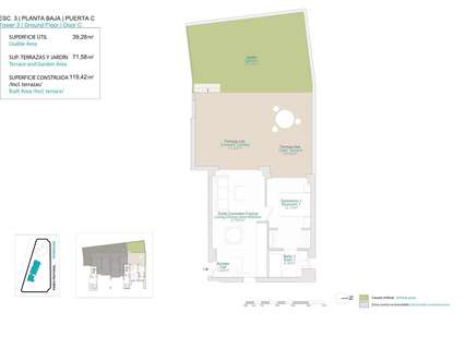 Viviendas en planta baja de 1 dormitorio y 1 baño con terrazas y jardines privados.