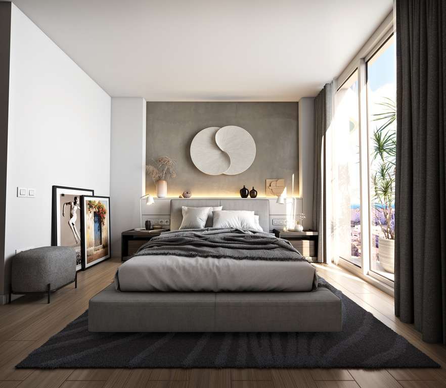 El interior de estas viviendas está cuidadosamente diseñado para ofrecer un ambiente acogedor y funcional. Con dos dormitorios y dos baños, cada bajos está equipado con aire acondicionado para garantizar el confort en todas las estaciones. Los suelos laminados aportan un toque moderno y elegante, mientras que los armarios empotrados ofrecen un almacenamiento eficiente. La cocina está equipada con electrodomésticos de alta calidad, facilitando las tareas diarias. Además, el sistema de videoportero y las persianas eléctricas añaden un nivel extra de comodidad y seguridad a la vida diaria.