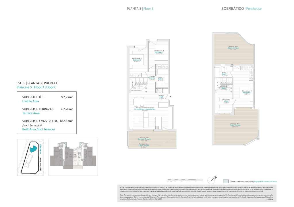 Áticos de 3 dormitorios y 2 baños con terrazas y solariums privados.