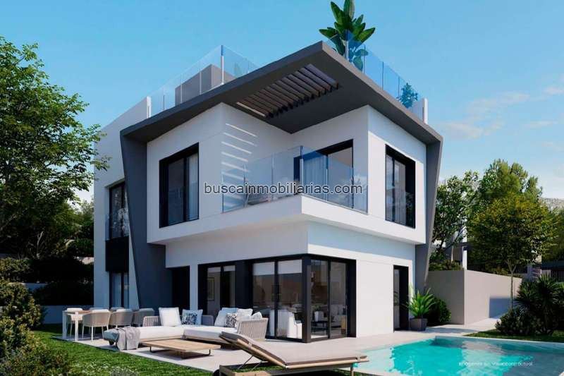 Cada villa cuenta con 4 dormitorios distribuidos en tres niveles, con una superficie útil aproximada de 179 m² y parcelas que oscilan entre 263 m² y 550 m². Todas disponen de espacios exteriores ajardinados, piscina privada, solárium, terrazas, porche, zona de aparcamiento y acceso independiente.