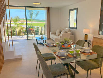 Descubra una oportunidad única para adquirir una de las limitadas viviendas adosadas de dos dormitorios en la primera fase de esta prestigiosa promoción. Este exclusivo complejo privado cuenta con solo 14 dúplex de diseño contemporáneo, ubicados alrededor de una elegante piscina comunitaria y rodeados de exuberantes jardines. El diseño moderno, la luz natural y las espectaculares vistas al campo de cricket y las montañas circundantes crean una atmósfera de lujo y tranquilidad. Situado en uno de los enclaves más deseados de la costa andaluza, en Cuevas del Almanzora y Vera (Almería), ofrece un estilo de vida exclusivo en el único campo de golf desértico de campeonato de Europa. Estas viviendas han sido diseñadas para proporcionar el máximo confort y funcionalidad, combinando materiales de alta calidad y una distribución eficiente que aprovecha la luz y las vistas al máximo.EXTERIORESEl diseño exterior refleja un estilo arquitectónico moderno con un toque mediterráneo, donde las líneas limpias y los materiales naturales se integran perfectamente con el entorno. Piscina comunitaria rodeada de zonas ajardinadas cuidadosamente diseñadas. Jardines privados y comunitarios con césped natural y vegetación autóctona. Plaza de aparcamiento privada para cada vivienda. Porche cubierto que conecta directamente con el salón, creando un espacio perfecto para disfrutar al aire libre. Solárium privado de 33 m² con vistas espectaculares al campo de cricket y las montañas. El complejo está situado en una comunidad cerrada con acceso restringido y seguridad las 24 horas, ofreciendo tranquilidad y privacidad a sus residentes.INTERIORESEl interior de cada vivienda ha sido diseñado para ofrecer amplitud, luminosidad y confort en cada espacio, utilizando materiales de primera calidad y un diseño contemporáneo. - Salón-Comedor con Terraza Privada: Salón diáfano que se abre a la terraza cubierta mediante ventanales de suelo a techo, permitiendo la entrada de luz natural y vistas despejadas. Espacio amplio que conecta el salón con el comedor y la cocina, creando un ambiente moderno y acogedor. - Cocina de Diseño Abierto: Cocina completamente equipada con encimeras de Silestone de alta resistencia. Electrodomésticos integrados: frigorífico/congelador, lavavajillas, horno, microondas y vitrocerámica. Muebles de cocina de diseño contemporáneo con acabado mate. Campana extractora de diseño moderno. - Dormitorios Espaciosos y Confortables: Dos dormitorios con armarios empotrados de puertas con espejo y cajoneras interiores. Dormitorio principal con baño en suite y acceso directo a la terraza privada. Acabados en tonos neutros y materiales de alta calidad para un ambiente cálido y moderno. - Baños de Alta Calidad: Equipados con sanitarios y grifería de las marcas Roca o Porcelanosa. Ducha tipo "rain shower" con mampara de vidrio templado. Muebles de lavabo suspendidos con espejo retroiluminado y almacenaje adicional. Revestimientos de pared en gres porcelánico de gran formato. - Solárium Privado: Amplio solárium privado de 33 m² con posibilidad de instalar un jacuzzi y una cocina de verano. Espacio perfecto para relajarse o disfrutar de cenas al aire libre con vistas panorámicas al Mediterráneo y las montañas.ZONAS COMUNESEste complejo ofrece una experiencia de vida tipo resort, con instalaciones y servicios diseñados para proporcionar el máximo confort y una experiencia inigualable: Piscina Comunitaria, Elegante piscina para adultos y piscina infantil rodeadas de zonas de césped natural y tumbonas. Zonas de descanso con pérgolas y sombrillas para garantizar sombra y confort. Jardines Privados y Comunitarios: Espacios verdes diseñados con plantas autóctonas y césped natural. Senderos peatonales y zonas de descanso al aire libre. Aparcamiento y Seguridad. Plaza de aparcamiento privada para cada vivienda. Complejo cerrado con acceso restringido y seguridad 24 horas.