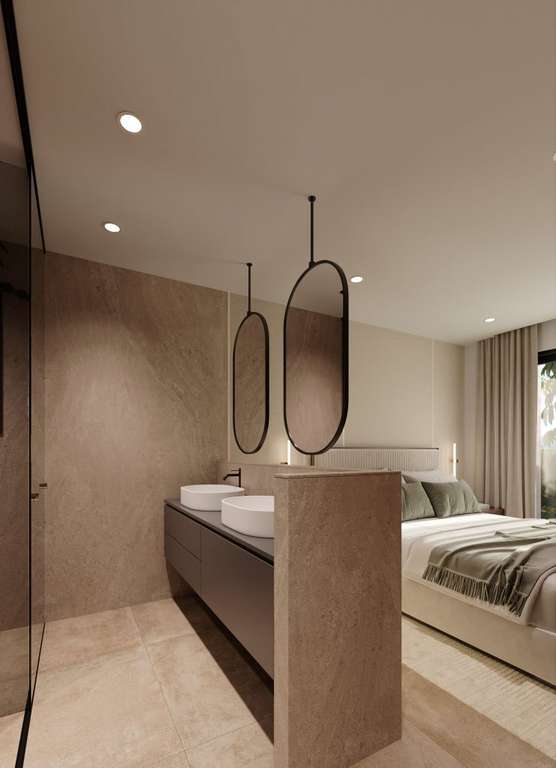 El diseño interior combina elegancia y funcionalidad en cada detalle. La vivienda cuenta con una distribución moderna y espaciosa que permite la entrada de abundante luz natural. La cocina está totalmente equipada con electrodomésticos de alta gama y acabados de primera calidad. Los dormitorios disponen de armarios empotrados, ofreciendo una solución eficiente de almacenamiento. Los baños están diseñados con materiales de lujo, incorporando elementos modernos y funcionales para maximizar el confort. El aire acondicionado y el doble acristalamiento garantizan un ambiente agradable durante todo el año.