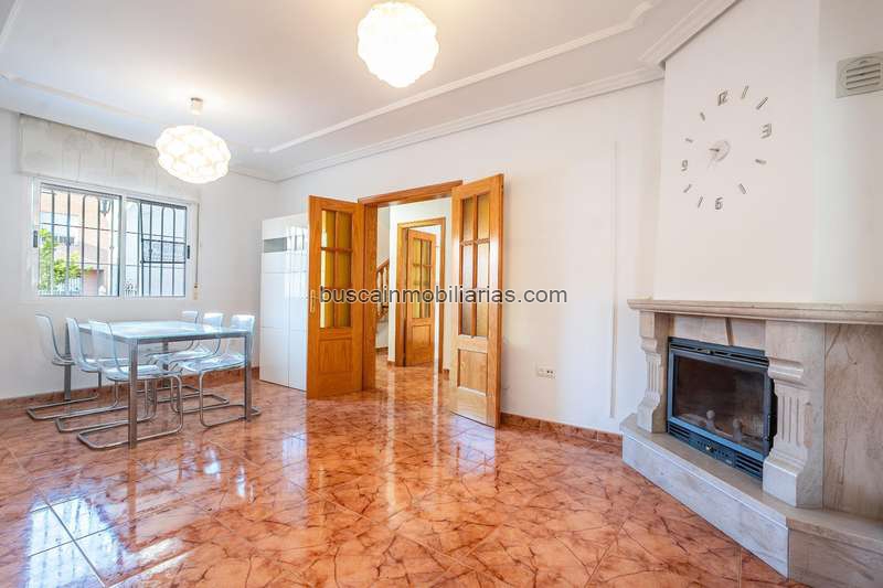 Planta baja: Espacioso porche de entrada, hall de entrada, salón luminoso que destaca por su acogedora chimenea, amplia cocina completamente equipada ( electrodomésticos de segunda mano no tienen garantía) con salida a un amplio patio con cerramiento para zona de lavado, baño completo con ducha y cochera con trastero en altillo. Posibilidad de hacer sótano.