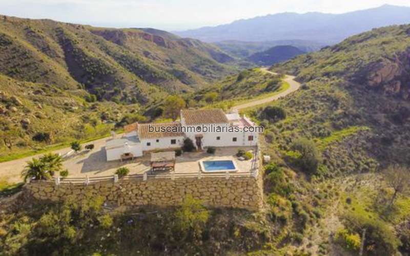 Este singular cortijo con infinitas vistas se encuentra en una zona LIC de las montañas de Bédar. El cortijo esta completamente reformado y se encuentra en una parcela de 4.123 metros cuadrados. Ofrece asombrosas vistas del exquisito paisaje montañoso, el pueblo de Mojácar y del Mediterráneo. La vivienda de 275 metros cuadrados cuenta con amplias terrazas, cuatro dormitorios, cuatro baños y una piscina. Se encuentra a 15 minutos del pueblo de Bedar y a 30 minutos de las playas de Mojácar y Vera. El cortijo Se accede al “Cortijo del Cura” por una carretera asfaltada y sinuosa. Fue reformado por los actuales propietarios, conservando todos los elementos originales de este cortijo andaluz centenario. La casa tiene gruesos muros de carga y hermosos techos tradicionales con vigas de madera y caña. El porche en el lado mar de la casa, te lleva a una cocina característica con con chimenea antigua y estufa de leña. El mobiliario es de ladrillo y madera con encimeras de mármol y electrodomésticos modernos. Destaca un doble lavabo de fabricado de un bloque mármol. Una pequeña escalera sube a un hermoso despacho, mientras que otros escalones bajan a una gran despensa. Junto a la cocina hay un pequeño comedor con puerta que da a la piscina y a la terraza con barbacoa. En el pequeño pasillo hay una puerta que esconde una escalera. Esta escalera te lleva al dormitorio principal con baño en suite y un vestidor muy peculiar con tres paredes de nichos, que antes eran palomares y ahora hacen un fabuloso expositor de zapatos. A cada lado del comedor hay dos dormitorios a cada lado del comedor, ambos con su baño en suite. A la derecha del comedor hay un pequeño pasillo. El pasillo conduce a la espaciosa sala de estar con área de lectura alrededor de una chimenea con estufa de leña y una zona de estar con puertas dobles que dan a la terraza en el lado del mar de la casa. Detrás del salón hay un amplio dormitorio doble con su baño. En el pequeño pasillo, una puerta esconde las escaleras a la primera planta. La primera planta consiste del suite principal con un baño y un vestidor muy peculiar con tres paredes de nichos, que en su época eran palomares y ahora hacen un fabuloso expositor de zapatos. Igualmente, hay un gran trastero con entrada independiente que podría convertirse en un estudio independiente. Exteriores Alrededor de la casa hay amplias terrazas cubiertas y soleadas, así como un solárium sobre el trastero para disfrutar de las infinitas vistas y hermosas noches estrelladas. Hay una terraza cubierta orientada al sureste con vistas al mar y con acceso directo a la cocina y a la sala de estar. La terraza al suroeste tiene una piscina y zona de barbacoa y acceso directo al comedor. La casa tiene un garaje para un coche y un segundo trastero en el lado norte del cortijo. El área alrededor de la casa está vallada ya que los dueños tienen perros aventureros. Suministros Este cortijo con infinitas vistas tiene agua corriente y está conectada a la red eléctrica. Hay Internet, TDT y televisión internacional. Estado y acabado El cortijo se encuentra en excelente estado. Fue completamente reformado en 2013.