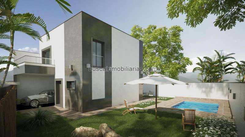 Cada vivienda consta de 3 dormitorios (el principal con vestidor y baño privado) 2 baños más (uno en la planta baja y otro en la planta primera), gran salón comedor, lavandería, garaje independiente de unos 20m2, lavandería, un jardín independiente, con posibilidad de piscina no incluida en el precio. Entre la entrada a la casa y la calle las casas tienen un patio de 8m2 que las hace más independientes y privadas. El dormitorio principal con balcón hacia el jardín y un balcón-terraza en uno de los dormitorios.