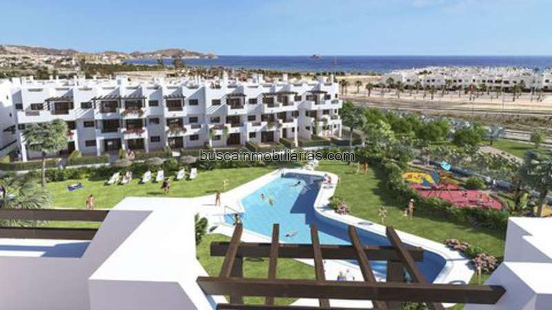 Descripción del objeto: Maravillosos áticos que estan situados muy cerca de la playa y que constan de una superficie de unas 167 m² (incluyendo terrazas) con 3 dormitorios, 2 baños (1 en-uite), 1 salón / comedor con cocina moderna, 1 lavadero, 1 terraza (a unos 19 m²) y 1 solario (a unos 57 m²). El complejo cuenta con vivienddas de 1, 2 y 3 dormitorios con amplias terrazas. Las viviendas en planta baja disponen de un porche cubierto y jardín . Los propietarios de las viviendas situadas en la primera planta sacarán todo el partido al sol almeriense en sus grandes terrazas en planta. También los interesados en un ático tienen a su alcance un amplio espacio exterior en forma de solarium con vistas al mar, al que pueden acceder desde su vivienda y que está dotado con ducha, grifo, punto de luz y toma de televisión y que permite, además, la colocación de barbacoa. Los apartamentos se ubican a corta distancia caminando de la Playa Los Nardos y Playa La Entrevista, en la costa de Almería, situado entre los municipios de Águilas y Vera. Se trata de una urbanización diseñada con grandes jardines y plazas interiores que incluyen una gran zona de piscinas y jacuzzi, bordeada por una amplia pradera de césped natural con duchas y sombrillas de brezo, que goza además de WIFI comunitario. Sus generosas zonas comunes cuentan, además, con una zona de juegos infantiles, todo ello en un perímetro cerrado de seguridad. Equipamiento adicional: El equipamiento de alta calidad de las viviendas incluye ventanas y puertas de PVC y aluminio con doble acristalamiento y mallorquinas, puertas de seguridad, rejas de seguridad en planta baja, cocinas amuebladas con armarios altos y bajos y campana extractora de humos, armarios empotrados en dormitorios, aparatos sanitarios de 1ª calidad, pre-instalación aire acondicionado, instalación de equipos de captación de señales de televisión totalmente gratuita en los idiomas: español, ruso, francés, inglés y alemán con receptor satélite digital HD en cada vivienda y instalación de router Wifi. Los jardines privados serán plantados y dotados con un sistema de riego automático, en los solarios se instalarán una ducha al aire libre y un grifo de agua. Todas las viviendas disponen de una plaza de aparcamiento en sótano. Pagando un sobreprecio las viviendas se entregarán también completamente amuebladas, es decir dotadas con muebles nuevos, una cocina integral con electrodomésticos y equipamiento básico de todo tipo de utensilios de cocina (lavadora, cafetera eléctrica, plancha, ollas, vajilla, cubiertos, etc.) así como ropa de cama, toallas, lámparas y cortinas para que uno pueda instalarse enseguida. El estilo del mobiliario y equipamiento es opcional. Ubicación de casa/solar: La urbanización se encuentra a tan sólo 600 m de la playa y junto al residencial está un centro comercial que dispone de varios locales con restauración, un supermercado y un centro deportivo entre otros. Además a unos 1.200 metros se encuentra San Juan de los Terreros, con todos los servicios básicos para la vida diaria. Y a sólo unos minutos en coche, la ciudad de Águilas cuenta con diversos centros comerciales y la oferta de servicios de una ciudad. El entorno de la urbanización está coloreado del verde de los campos de golf Aguilón Golf y Desert Spring Golf, ubicados a 3 kilómetros del residencial. Las ciudades más cercanas son Lorca, Cartagena y Almería, y los aeropuertos de Murcia y Almería están a una hora de distancia, pero también el aeropuerto de Alicante es fácil de alcanzar a través de la autopista AP-7.