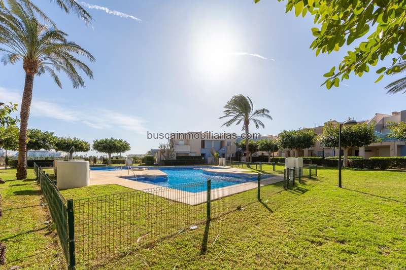 Precioso apartamento, en primera planta, ubicado en la exclusiva urbanización "Oasis", junto al campo de Golf de playa Serena, con un entorno natural de más de 45 Has, sin olvidar su Luminosa Costa de amplias y tranquilas Playas. Cuenta además con cocina equipada y terraza de 12 m2 desde la que poder disfrutar de vistas a la piscina comunitaria y a la laguna.