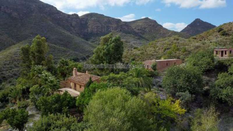Una propiedad única para amantes de la naturaleza: descubre esta singular propiedad que cuenta con dos amplios cortijos situados en una reserva natural y protegida en el Levante almeriense. Ubicada en el impresionante entorno de la Sierra Cabrera, este lugar ofrece una combinación perfecta de tranquilidad serena y encanto auténtico. Ambos cortijos están listos para una renovación creativa, ideal para quienes buscan un proyecto con visión y pasión. Con una superficie construida total de aproximadamente 500 metros cuadrados con un terreno de 45 hectáreas, esta propiedad es una joya en medio de un paisaje exuberante. El agua de manantial, que fluye directamente de las montañas, favorece una vegetación exuberante y convierte el lugar en un verdadero oasis. Cortijo La Joya Verde Este encantador cortijo antiguo ha sido restaurado con esmero, preservando su carácter tradicional. Con más de 300 m² distribuidos en dos plantas, ofrece tanto espacio como potencial para crear un hogar a tu gusto. En la planta baja, se han conservado los detalles originales del cortijo, creando un ambiente acogedor. La vivienda es habitable, aunque actualmente carece de electricidad. Dispone de un salón con chimenea, dos dormitorios, un baño y una amplia cocina con comedor. Desde el salón, se accede a una terraza cubierta con vistas panorámicas impresionantes. Uno de los dormitorios tiene salida a un patio, mientras que la cocina conecta tanto con la terraza cubierta , como con el patio. Una puerta en el salón lleva a una escalera que conduce a la planta alta. La planta superior ha sido renovada estructuralmente, con techos restaurados, nuevas paredes e pre-instalaciones sanitarias y eléctricas. Esta planta ofrece gran flexibilidad para diseñar el espacio a tu gusto. Actualmente, se ha previsto un segundo salón con cocina abierta, tres dormitorios y dos baños, con la posibilidad de reconfigurar el espacio para crear hasta cuatro habitaciones de huéspedes con baños privados. Dos de estas habitaciones tienen acceso a una terraza de 26 m². La planta superior es accesible tanto por una escalera interior como por una escalera exterior desde el patio. Cortijo Alegria Detrás del patio de Cortijo La Joya Verde, se encuentra el jardín del segundo cortijo: Cortijo Alegria. Los techos y fachadas de Cortijo Alegria han sido completamente restaurados, y ahora la carpintería, las paredes divisorias, las instalaciones y los suelos esperan la personalización del comprador. Este cortijo de piedra, de aproximadamente 180 m², es un lienzo en blanco, listo para transformarse en un diseño moderno de planta abierta con grandes ventanales o en una opción más tradicional con paredes divisorias. Ofrece privacidad total y dispone de un acceso independiente que puede restaurarse fácilmente. Exteriores de los Cortijos Ambos cortijos cuentan con amplias terrazas. Cortijo La Joya Verde tiene una gran terraza cubierta, recientemente reforzada, que permite que las habitaciones en la planta superior también tengan una terraza. Con una orientación este, el porche ofrece vistas espectaculares a las montañas y está rodeada de árboles y arbustos maduros. También proporciona una vista parcial de otro cortijo situado a 100 metros, que puede ocultarse fácilmente plantando más árboles.