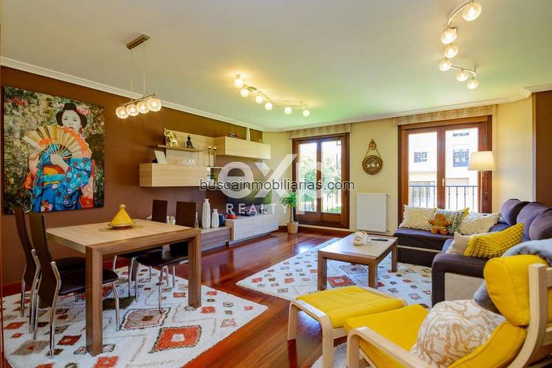 El inmueble dispone de un amplio salón de aproximadamente 29 m2, una estancia muy generosa, luminosa y perfectamente diferenciada en zona de estar y zona de comedor. Destacan los suelos de madera, la carpintería interior en madera, los amplios ventanales, la salida tipo balcón y una decoración actual y cálida que realza todavía más el espacio. El mobiliario del salón y comedor, visible en las imágenes, forma parte del conjunto, aportando un valor añadido muy importante a la vivienda.