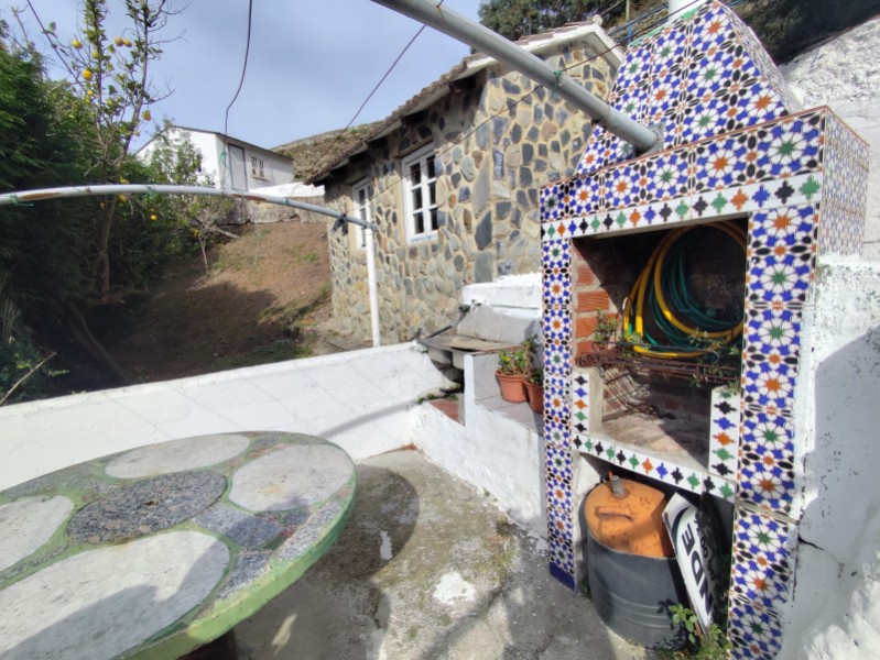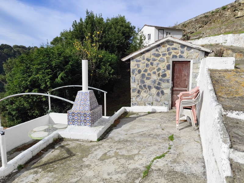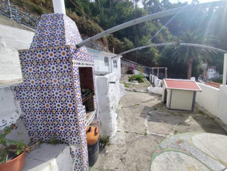 Además, la propiedad incluye una edificación auxiliar de 29 m² y dos construcciones adicionales destinadas a aperos de 12 m² y 18 m², ideales como almacén, taller o espacio de ocio. Zona de parrilla en el exterior contemplando el pueblo de Cudillero.