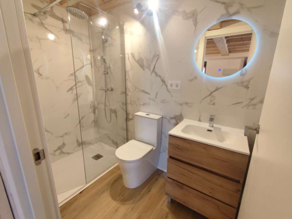 En la planta baja dispone de un espacio diáfano con cocina y salón integrados, creando una estancia cómoda y luminosa, además de baño completo.